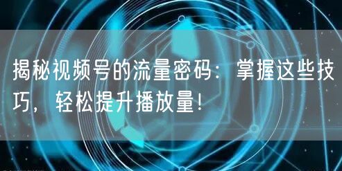 揭秘视频号的流量密码:掌握这些技巧,轻松提升播放量!