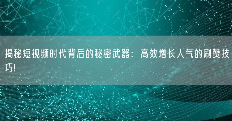 揭秘短视频时代背后的秘密武器:高效增长人气的刷赞技巧!